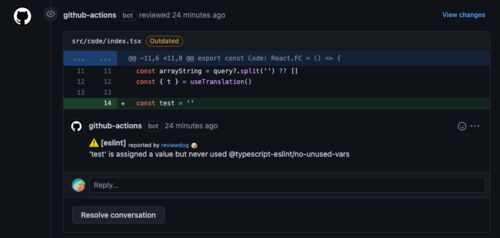 next lint の結果を Reviewdog に食わせて PR にコメントとして出したかったんだけど結構ハマったのでメモ。 普通に next lint を動かしてもだめ "scripts": { "lint": "next lint" } - uses: reviewdog/action-setup@v1 with: reviewdog_version: latest - …